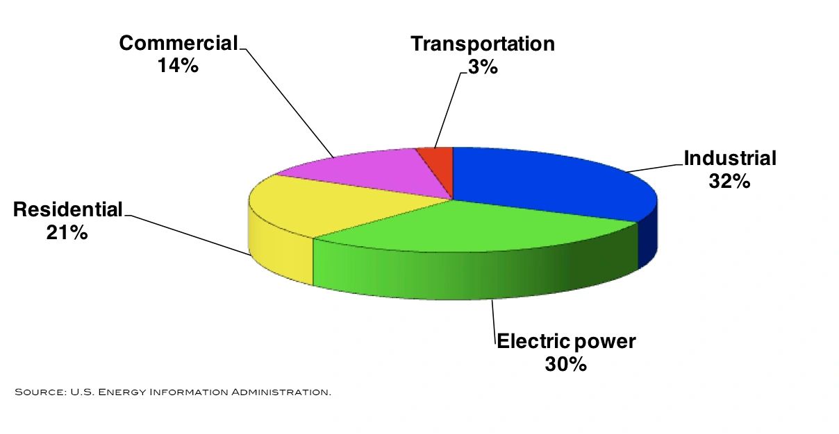 Natural gas is an odorless, nontoxic, gaseous mixture of hydrocarbons, predominantly methane (CH4), and accounts for nearly a quarter of the energy used in the United States. Approximately one-third of natural gas usage is for residential and commercial uses, such as heating and cooking; one-third to industrial purposes; and one-third to electric power production.